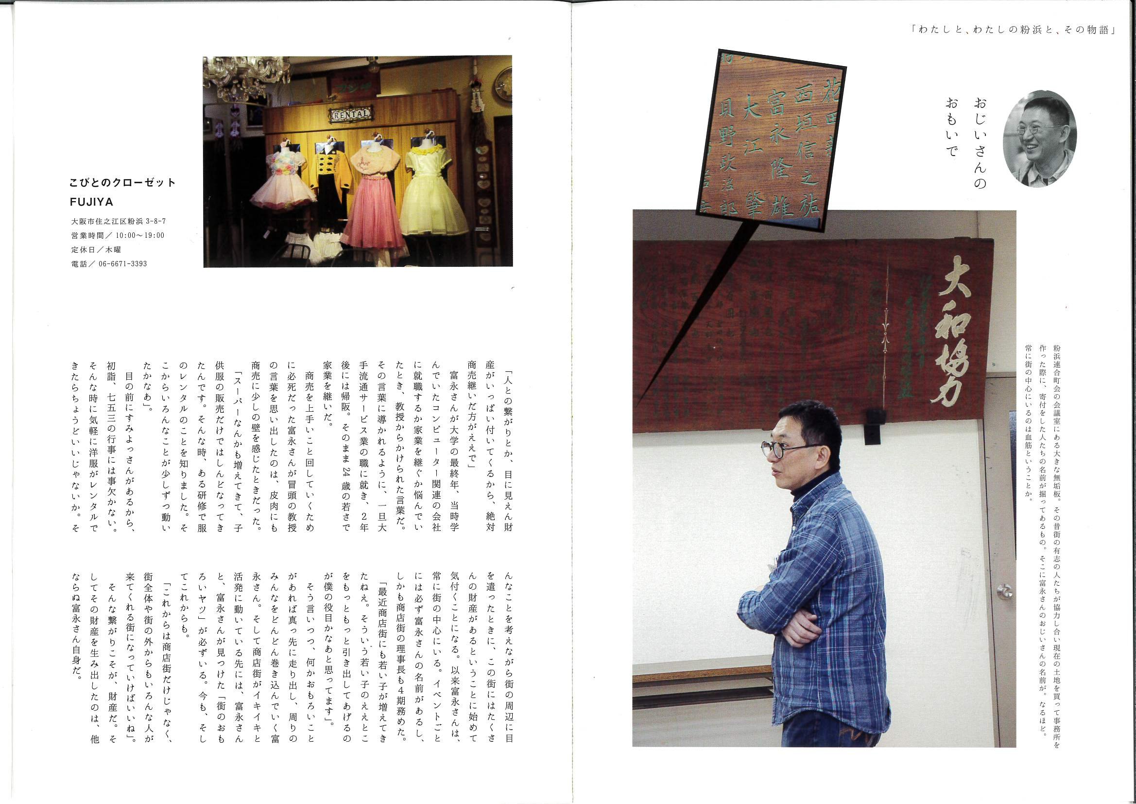 粉浜の町で75年にわたり営業を続けてきたこびとのクローゼットフジヤ が、地域の暮らしや営みを記録する冊子「粉浜帖」に掲載されました。
