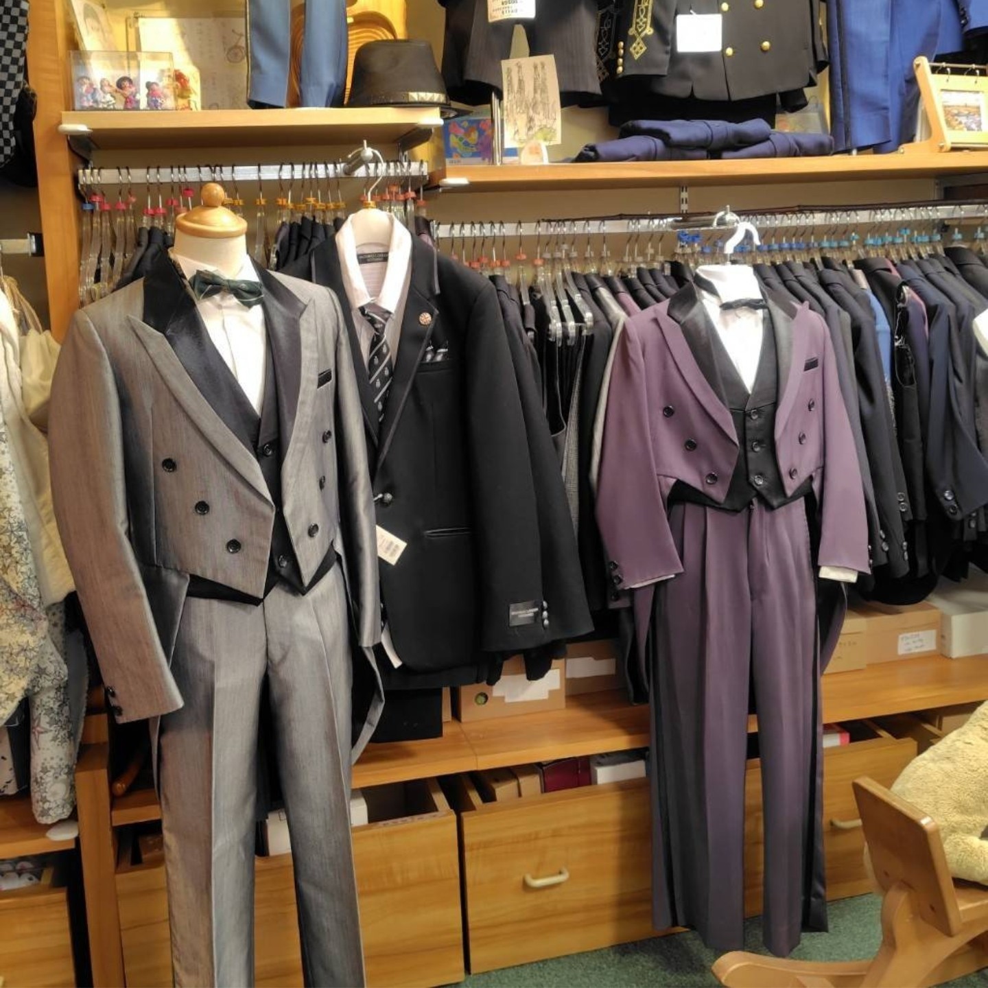 フォーマルウェアはレンタルだけでなく、一部、販売しているものもございます。お気軽にお尋ねください。