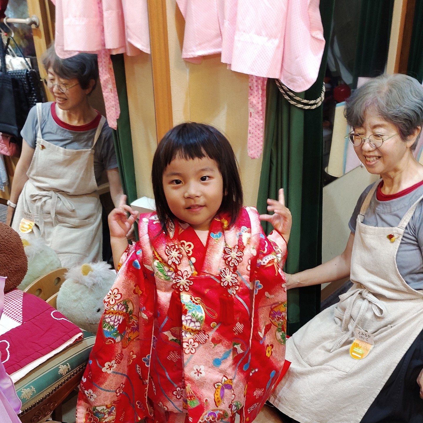 七五三などでお子さまに和服を着せるのはお任せください。できるだけ楽しい雰囲気で着ていただけるようにしています。